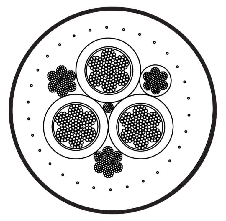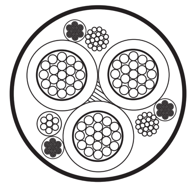 FC-MP-GC-3C-25KV: Cable alimentador de potencia minera trifásico.